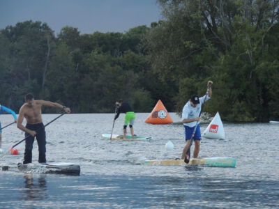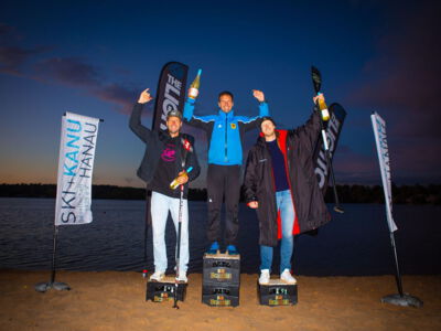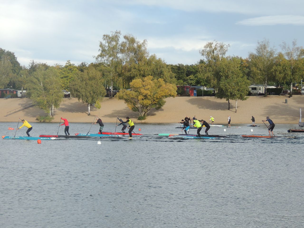 Die SKG Hanau mit Normen Weber als „Zeitmaschine“ von den Kanu Schwaben hatte den See in eine kleine Regatta verwandelt. Die Sprints fanden in einer eigens geschaffenen kleinen Mini-Regatta statt. Moderiert wurde die DM von Rudy van Haven – ein SUPler der ersten Stunde.