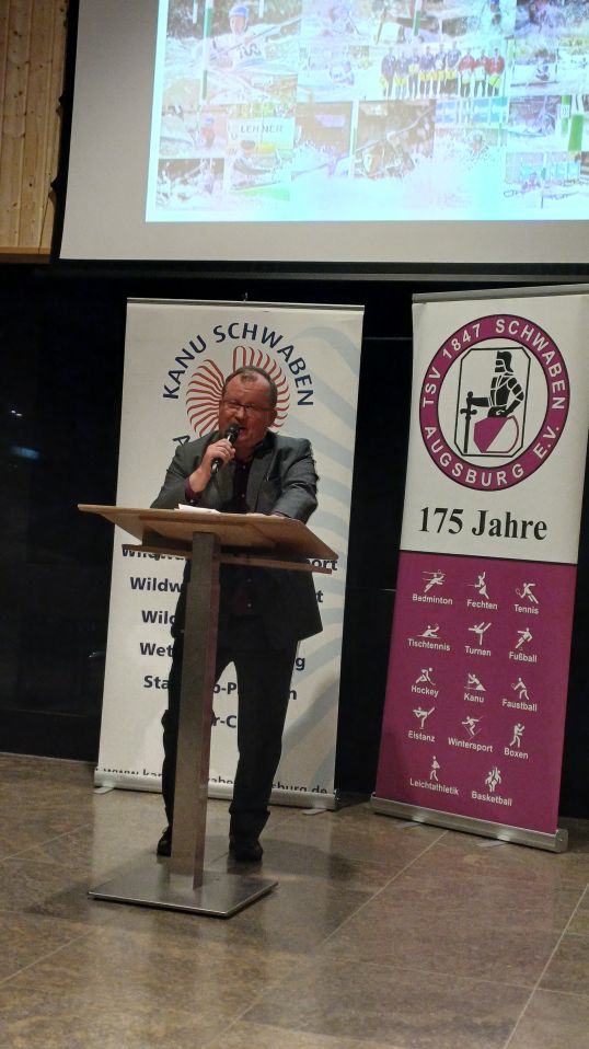 Dann erfolgte die Begrüßung der Gäste und die Grußworte - begonnen von der Oberbürgermeisterin der Stadt Augburg Eva Weber, dem Präsident des BLSV Jörg Ammon, dem Präsident des BKV Oliver Bungers, Jürgen K.Enninger Referent für Kultur, Welterbe und Sport der Stadt Augsburg, 3. Bgm. der Stadt Augsburg Bernd Kränzle, Stadtsparkasse Pressesprecher Marcus Hupfauer, MDL Andreas Jäckel, Alt OB, Ehrenbürger und Ehrenmitglied Dr. Peter Menacher mit Gattin , DKV Bundestrainer Thomas Apel, 1. Vors. AKV Melanie Martin, 2. Vors. AKV Jürgen Diemer, BKV Bezirk Schwaben Udo Imminger
