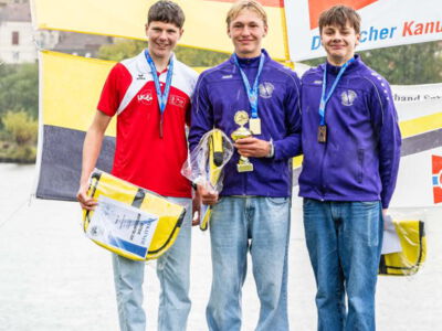 Sehr erfreulich auch die drei Medaillen in den Team-Wettbewerben. Hier gab es U18-Gold für Kalle Neumann, Thomas Reys und Moritz Eichele. Silber ging ebenfalls an Kanu Schwaben Augsburg in der Besetzung Tim Bunte, Linus Häfner und Matti Neumann. In der Leistungklasse der Kanadierfahrer – dass sind die mit nur einem Paddelblatt – gab es Bronze für Julian Lindolf und Philipp Süß, die als Renngemeinschaft mit Oskar Gesser vom Augsburger Kajak Verein an den Start gegangen waren.
