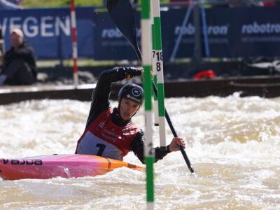 Noah Hegge (Kanu Schwaben Augsburg) hat sich im Kajak-Einer mit seinen drei Siegen und einem zweiten Platz in vier Rennen am Wochenende in Markkleeberg deutlich vom Rest des Feldes im Kajak-Herrenbereich abgesetzt. Der 27-Jährige zeigte sich sehr zufrieden zur Halbzeit der WM-Qualifikation. „Ich denke, ich habe mein Fahren gezeigt. Dass es reicht, ist gut. Jetzt schaue ich, dass ich es in Augsburg zu Ende bekomme und dann liegt der volle Fokus auf Cross“, sagte er. Denn: Mit seinen Ergebnissen – Ränge zwei und fünf – im Cross-Einzelzeitfahren am ersten Tag der Qualifikation haderte er ein wenig. Auch wenn der Augsburger mit seinen drei Siegen im Slalom aktuell das Feld beherrscht, kommen punktuell Nachwuchsathleten an Hegges Fahrzeiten heran.
