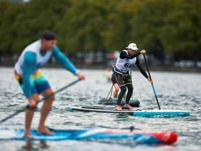 Für die Teilnehmenden waren zwei Distanzen, 10 oder 5 km vorgesehen. Für die iSUPs werden meist 5 km gewählt. Thomas entschied sich für die 10 km und trat somit gegen die Hardboard/Raceboard an.