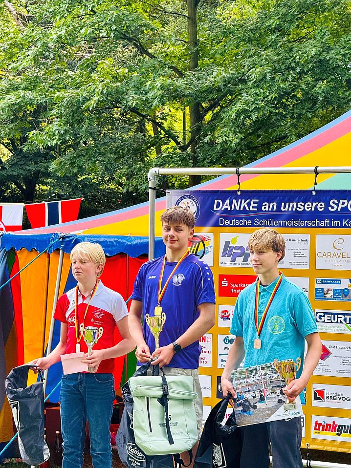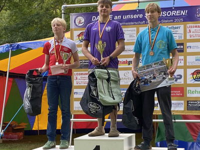 In den Kajak Mannschaften handelte sich das Team Oliver Reys-Sam Neumann und Tim Heller leider zu viele Strafsekunden ein und kamen dadurch auf den vierten Platz. 30 K 1 Mannschaften waren am Start, man sieht eine große Teilnahme an der Deutschen Schülermeisterschaft.