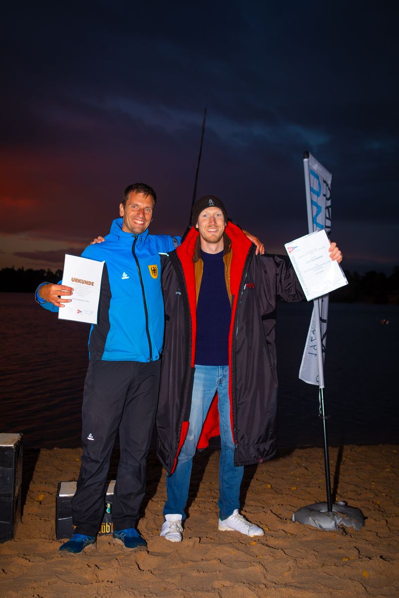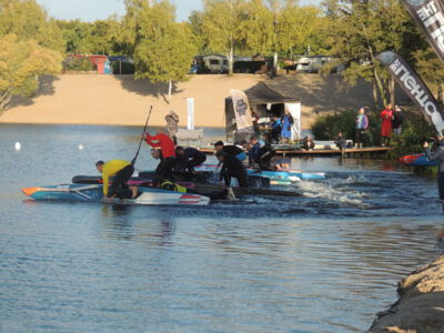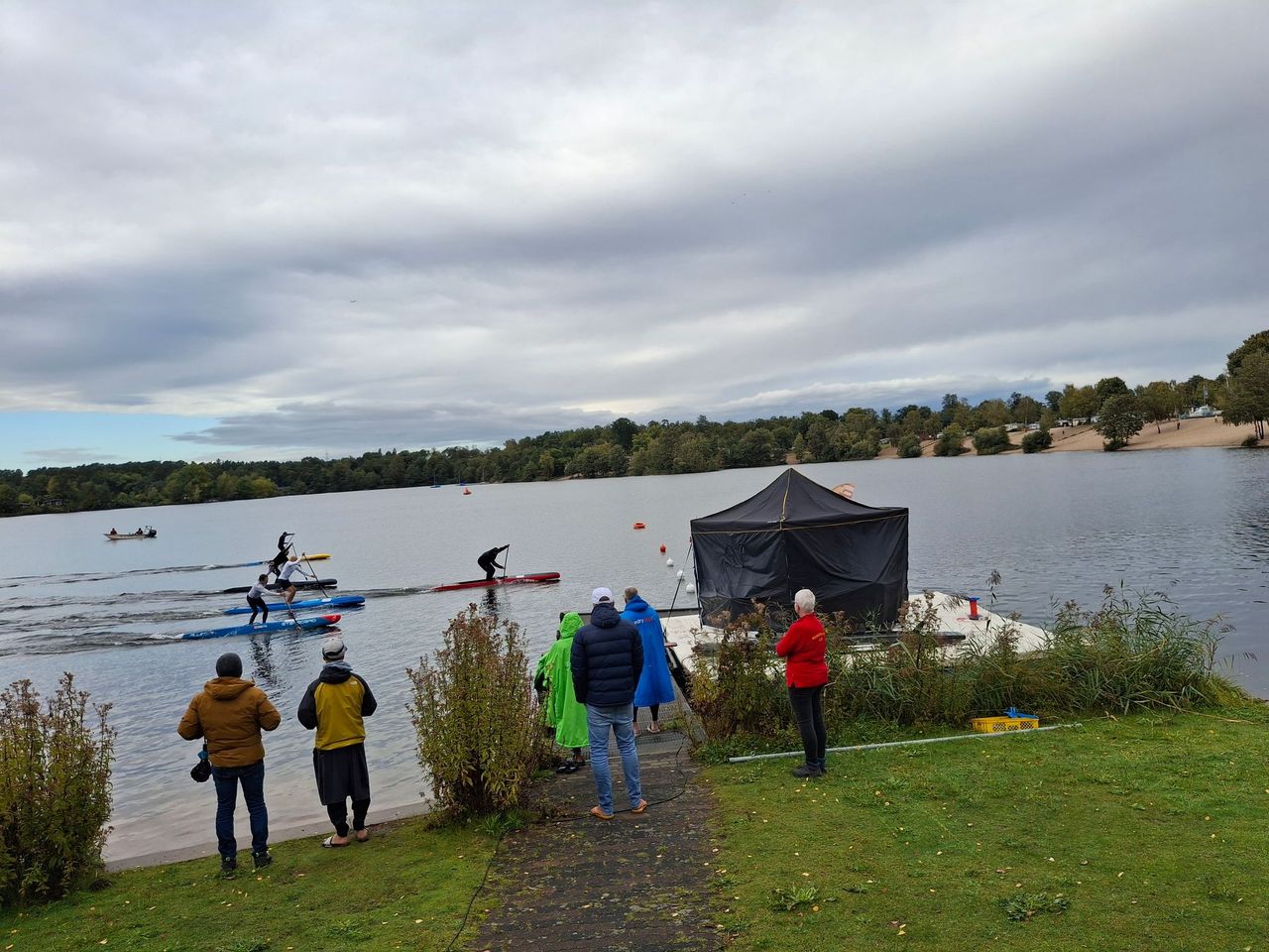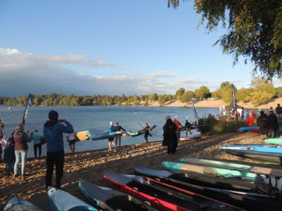 Die SKG Hanau mit Normen Weber als „Zeitmaschine“ von den Kanu Schwaben hatte den See in eine kleine Regatta verwandelt. Die Sprints fanden in einer eigens geschaffenen kleinen Mini-Regatta statt. Moderiert wurde die DM von Rudy van Haven – ein SUPler der ersten Stunde.