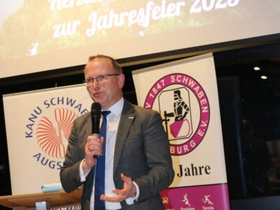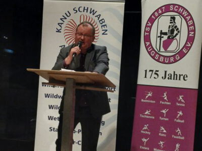 Dann erfolgte die Begrüßung der Gäste und die Grußworte - begonnen von der Oberbürgermeisterin der Stadt Augburg Eva Weber, dem Präsident des BLSV Jörg Ammon, dem Präsident des BKV Oliver Bungers, Jürgen K.Enninger Referent für Kultur, Welterbe und Sport der Stadt Augsburg, 3. Bgm. der Stadt Augsburg Bernd Kränzle, Stadtsparkasse Pressesprecher Marcus Hupfauer, MDL Andreas Jäckel, Alt OB, Ehrenbürger und Ehrenmitglied Dr. Peter Menacher mit Gattin , DKV Bundestrainer Thomas Apel, 1. Vors. AKV Melanie Martin, 2. Vors. AKV Jürgen Diemer, BKV Bezirk Schwaben Udo Imminger