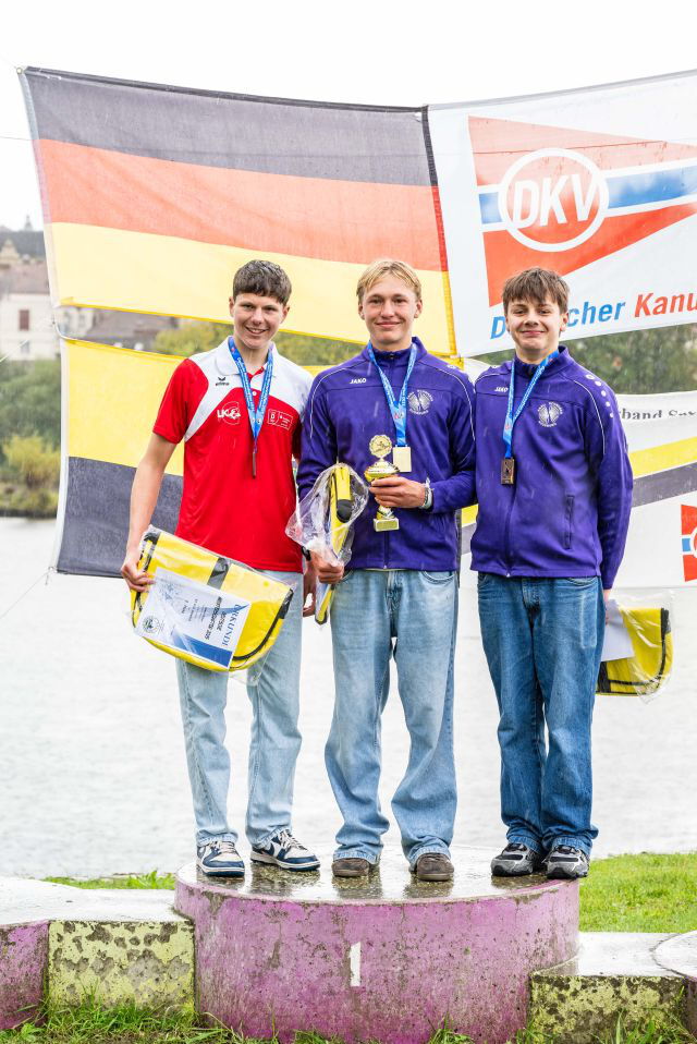 Kanu-Schwaben-Paddler Matti Neumann ist Deutscher Meister im Kanuslalom - 1. Platz Matti Neumann - 2. Platz Simon Ecker - 3. Platz Oliver Reys