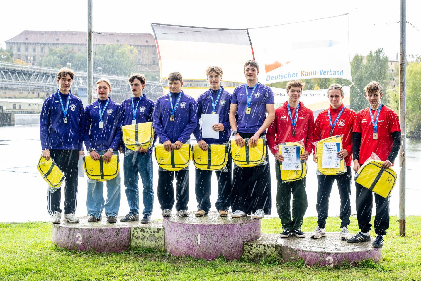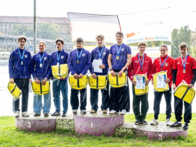 Sehr erfreulich auch die drei Medaillen in den Team-Wettbewerben. Hier gab es U18-Gold für Kalle Neumann, Thomas Reys und Moritz Eichele. Silber ging ebenfalls an Kanu Schwaben Augsburg in der Besetzung Tim Bunte, Linus Häfner und Matti Neumann. In der Leistungklasse der Kanadierfahrer – dass sind die mit nur einem Paddelblatt – gab es Bronze für Julian Lindolf und Philipp Süß, die als Renngemeinschaft mit Oskar Gesser vom Augsburger Kajak Verein an den Start gegangen waren.
