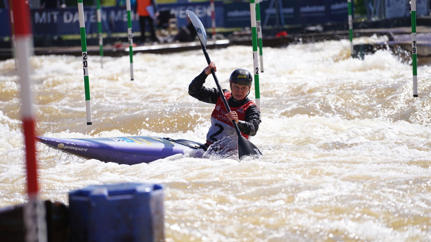Bei den Kajak-Junioren hat sich Kilian Käding mit seinen drei Siegen zur Halbzeit der U18-Qualifikation etwas vom Rest des Feldes abgesetzt, auch wenn sich das in der Gesamtpunktetabelle zur Halbzeit nicht darstellt. Denn im vierten Lauf befuhr er ein Tor nicht korrekt, was mit einer 50-Sekunden-Strafe geahndet wurde. Trotz dieses Patzers kann der Leipziger optimistisch in die zweite Halbzeit der Kanuslalom-Qualifikation am nächsten Wochenende in Augsburg gehen, denn zwei Streichergebnisse darf man sich erlauben.