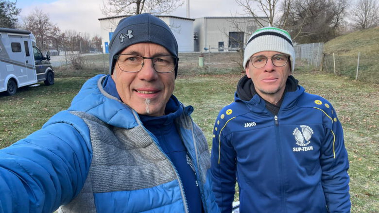 Bei Minusgraden ( ./. 4 Grad und mehr) nahmen am Wochenende die beiden Schwabenstarter Thomas Hanke-Hanel (THH) und Thomas Böwing am 1. Wintercup in Straubing im SUP teil. Das SUP Rennen gewann Christian Hüllen vom Radteam Aichach auf der 7 km langen Strecke mit 36:06 Minuten, Aber die beiden Schwabenkanuten Thomas Hanke-Hanel und Thomas Böwig legten sich gewaltig ins Zeug und holten sich den zweiten und dritten Platz. Ihre Platzierungen können sich sehen lassen. 24 Rennsportler nahmen am 1. Wintercup teil (Massenstart).