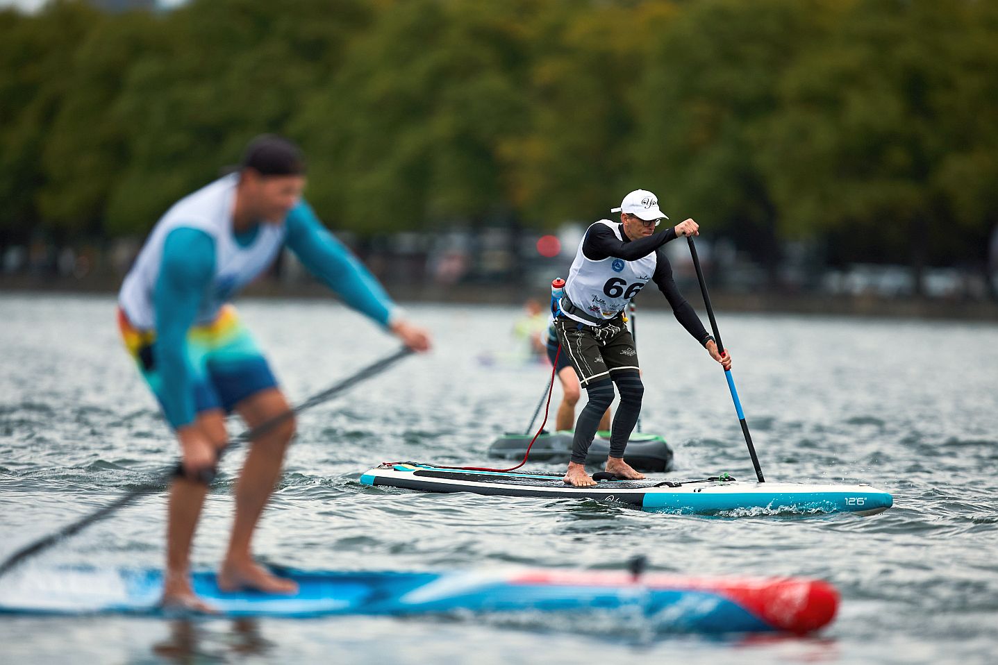 Für die Teilnehmenden waren zwei Distanzen, 10 oder 5 km vorgesehen. Für die iSUPs werden meist 5 km gewählt. Thomas entschied sich für die 10 km und trat somit gegen die Hardboard/Raceboard an.